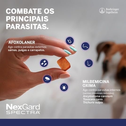 NexGard substitui a vermifugação? Não, o NexGard age apenas contra ectoparasitas. A vermifugação para parasitas intestinais deve ser mantida.