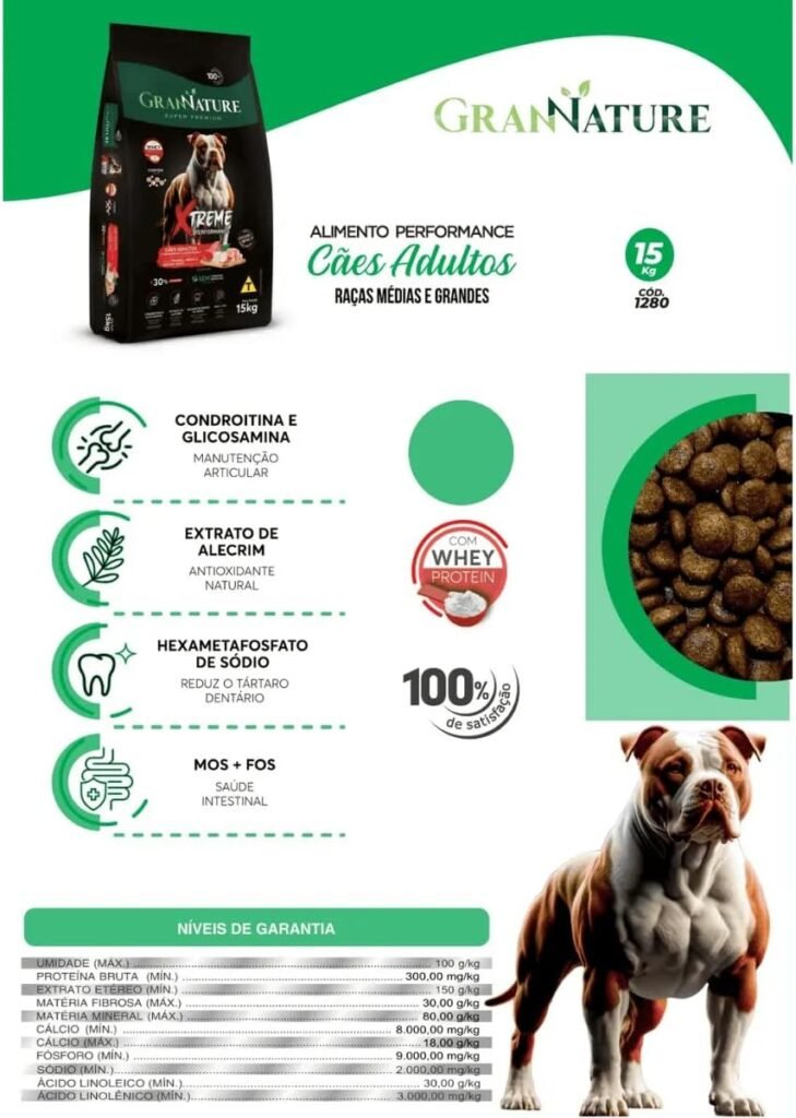 - ✅ Maior teor proteico (30%) – Ideal para cães ativos.