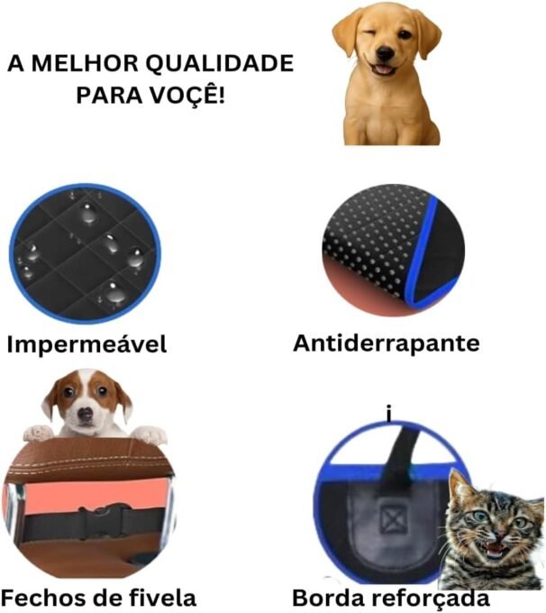 A Capa Pet Impermeável para Carro 4 em 1 é um acessório indispensável para tutores que transportam cães ou gatos no banco traseiro do carro e desejam manter o veículo limpo, protegido e, principalmente, garantir segurança e conforto ao pet.